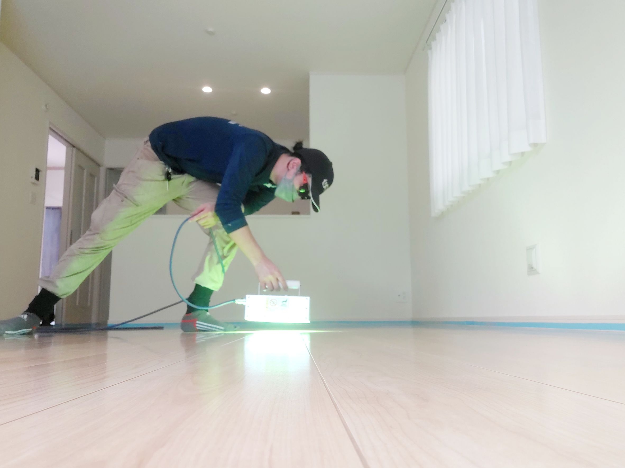 昨日オプション工事でお伺いしたお宅で、本日はフロアコーティングの施工でお伺いしました。