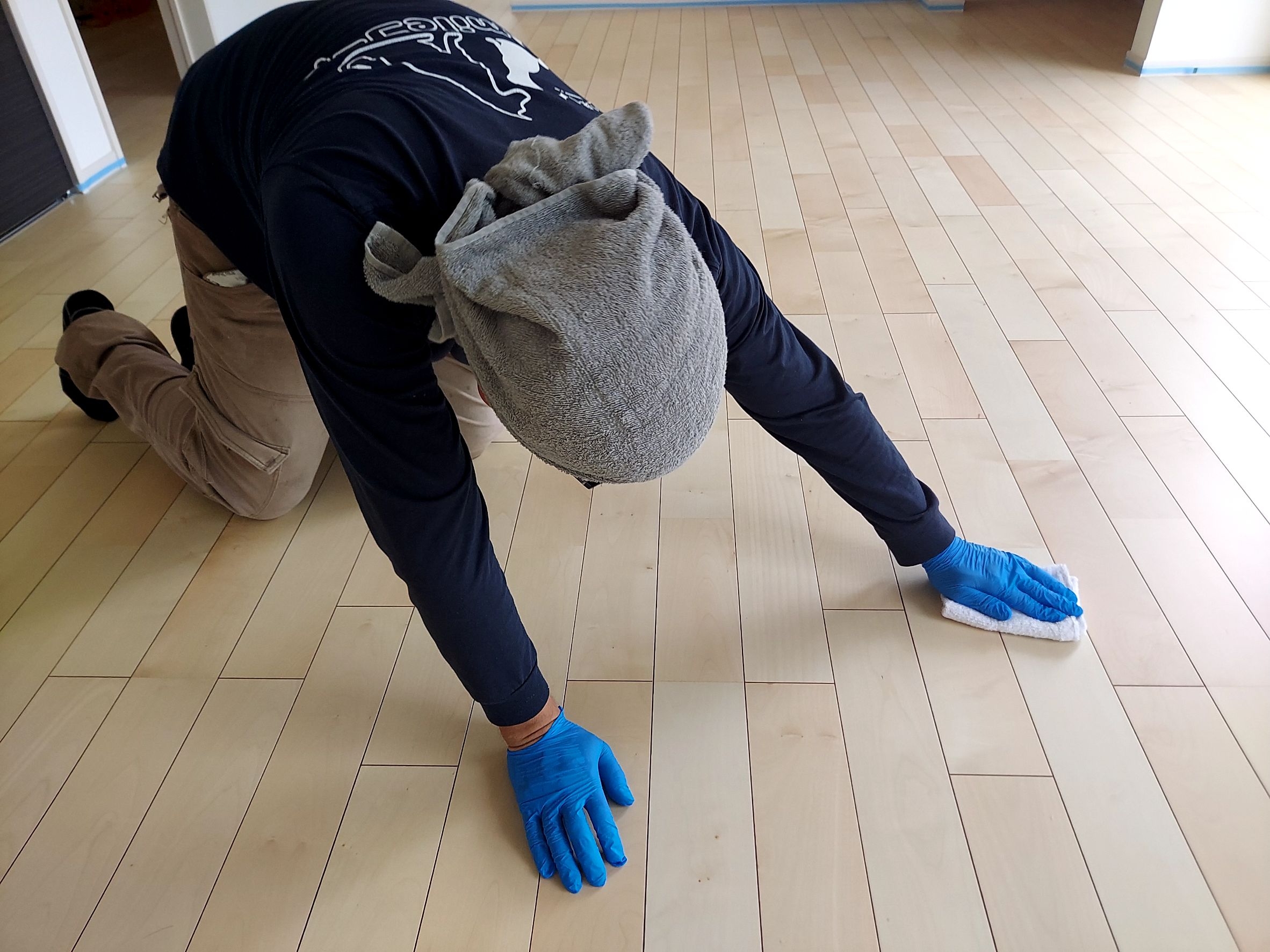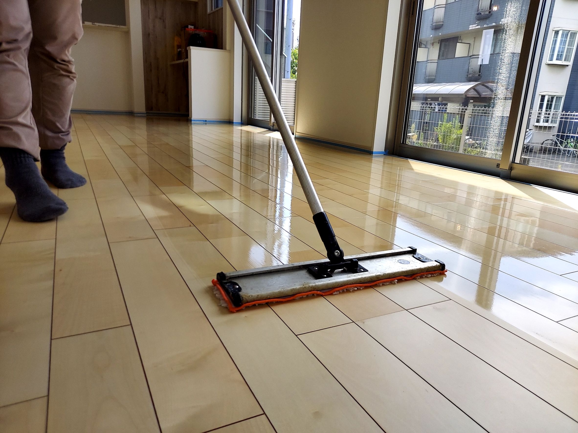 きゅっピカは高濃度アルコール。油分を飛ばすので、これで吹き上げれば滑りやすくなった床もグリップ力が元通りに!