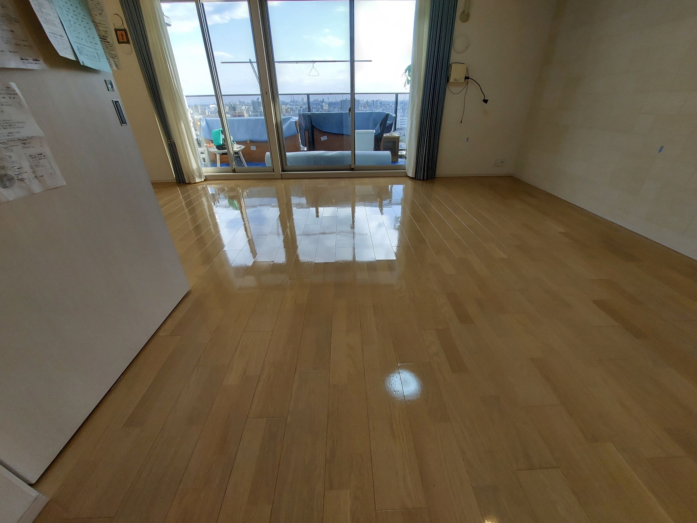 施工後きれいになった床をご覧になり、大変お喜びいただきました!
