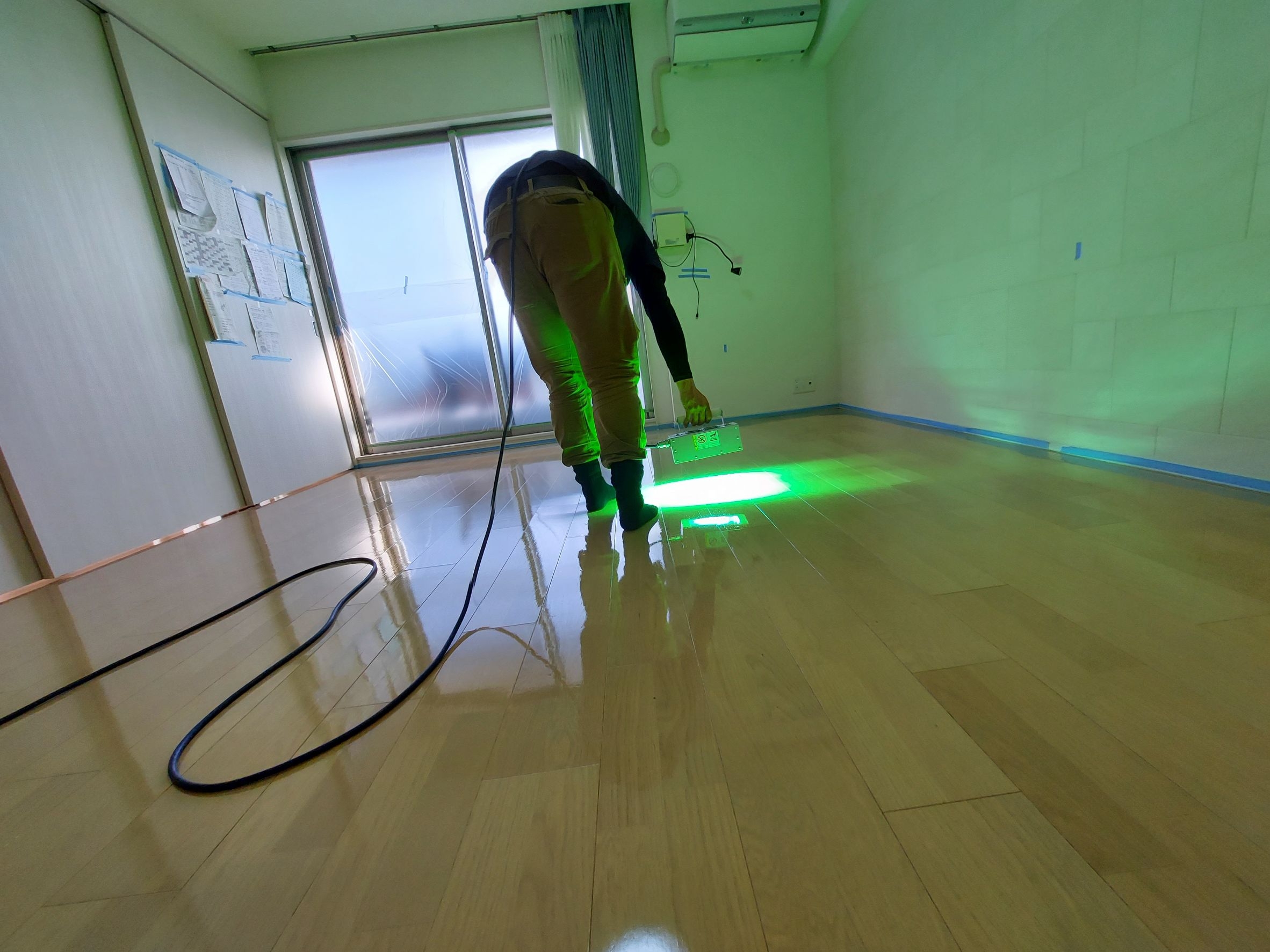 UV照射機で瞬時に固めるので、荷物の搬入がすぐに可能。