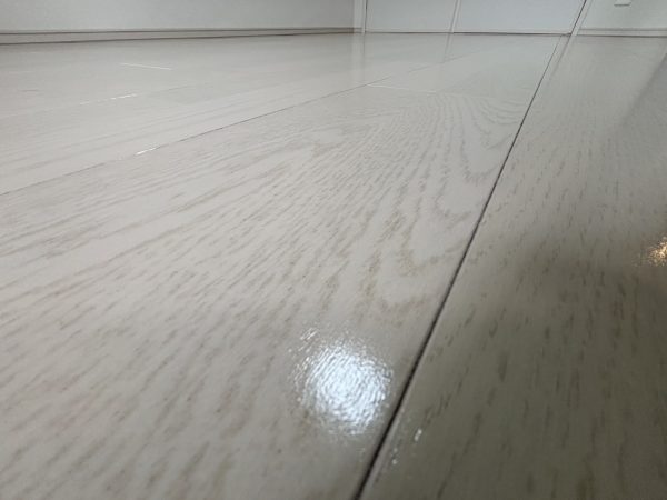 神奈川県川崎市幸区にて、入居中マンション(築5年)の床に「ガラスUVコーティング」を施工しました。