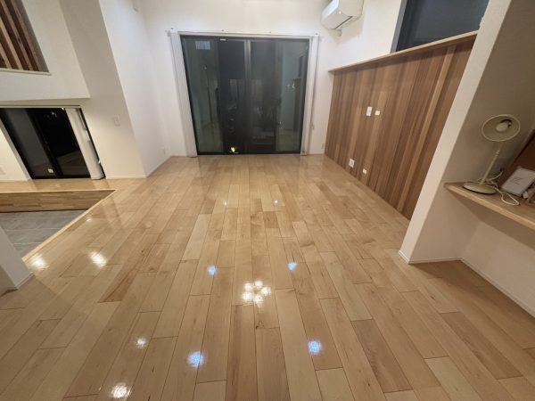 千葉県流山市西平井にて、新築戸建の床に「ガラスUVコーティング」を施工しました。