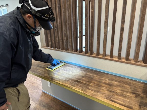 カウンターへのコーティングは、シミ防止でご利用いただきました!