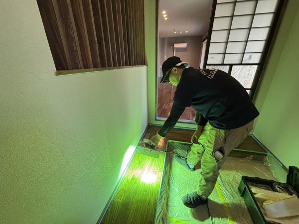今回は伊奈町中央にある新築戸建てのお宅へ、フロアコーティング(ガラスUVコーティング)の施工でお伺いしました。
