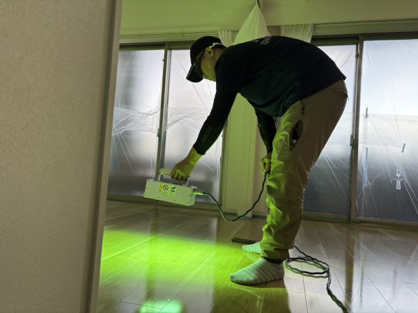 施工を希望されたきっかけは、以前住まれていた方が塗ったワックスの剥がれやムラが気になり、剥離清掃を含め弊社にご依頼いただきました。
