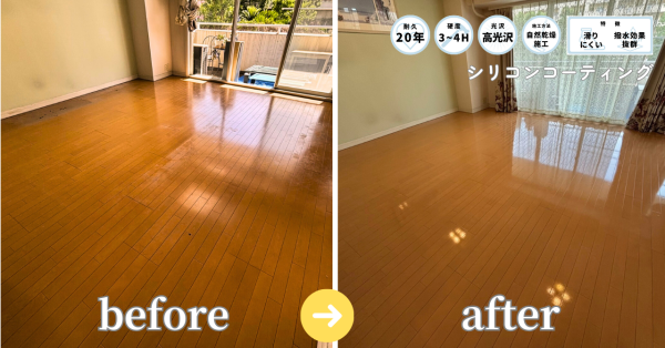 神奈川県横浜市瀬谷区のフロアコーティング施工事例|高光沢×撥水効果のシリコン仕上げ