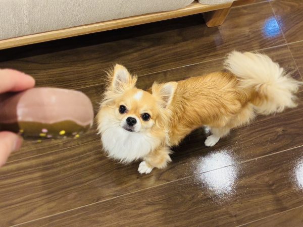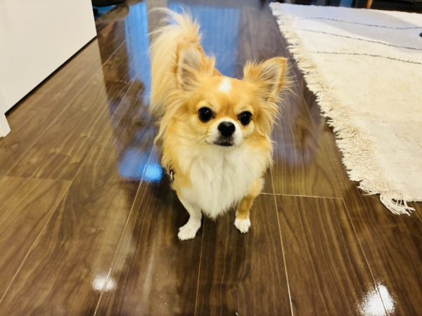 床が滑り過ぎて、ワンちゃんが床を歩くのを避けていた為わんスマイルコートのご依頼をいただきました。