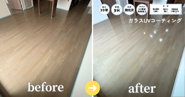 アップライフでは、お子さまやペットの安全を考えた、滑りにくく傷に強い高耐久の微光沢のフロアコーティングから、傷に強いマットなフロアコーティングまで、多彩な施工プランをご用意しております✨