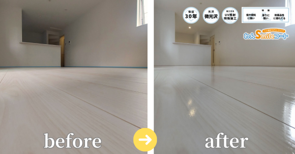 アップライフでは、お子さまやペットの安全を考えた、滑りにくく傷に強い高耐久の微光沢のフロアコーティングから、傷に強いマットなフロアコーティングまで、多彩な施工プランをご用意しております✨