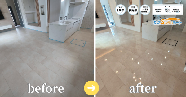 - ・「見た目だけのもの」ではなく、実際は摩耗・薬品・紫外線から床材を守る“耐久コート”。