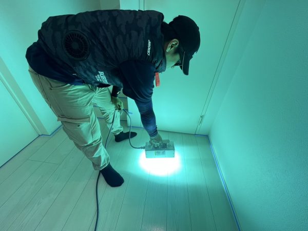 UV照射施工コーティングはトップ層が瞬時に硬化しますが、照射前の下地層は自然乾燥のため、気温や湿度によって乾きの速さが変わります。