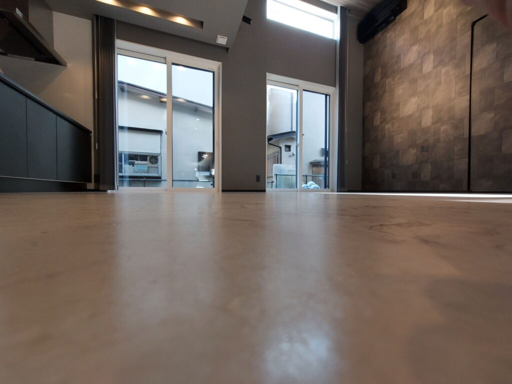 フロアタイルを採用した新築リビングの床